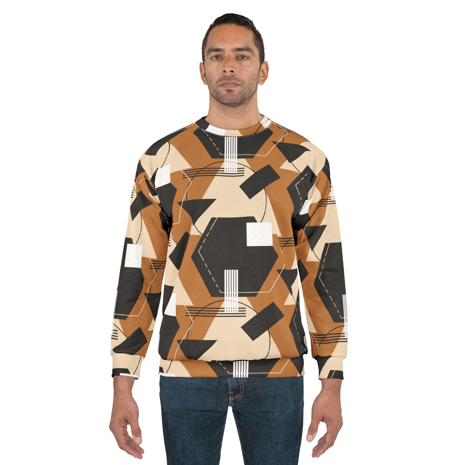 This all over print crewneck sweatshirt is the perfect example of cool. With quality all-over printing capabilities, you won’t be worried about white lines at the seams. This fleece is custom cut and sewn, featuring a crew neck and set-in sleeves to keep you warm.